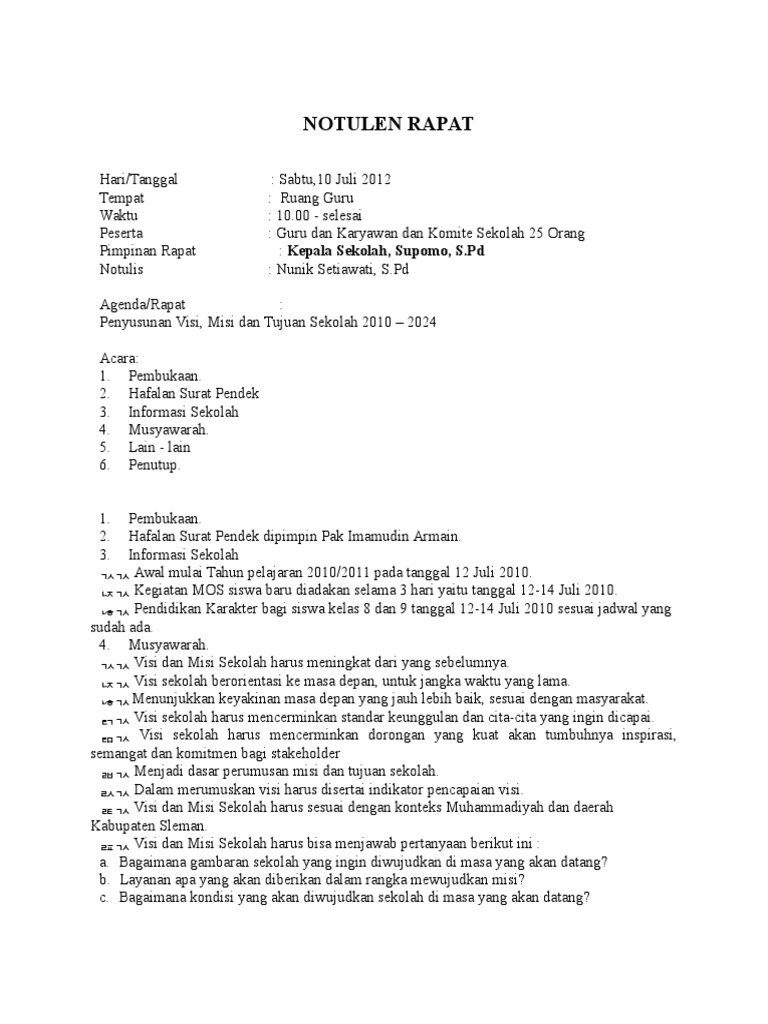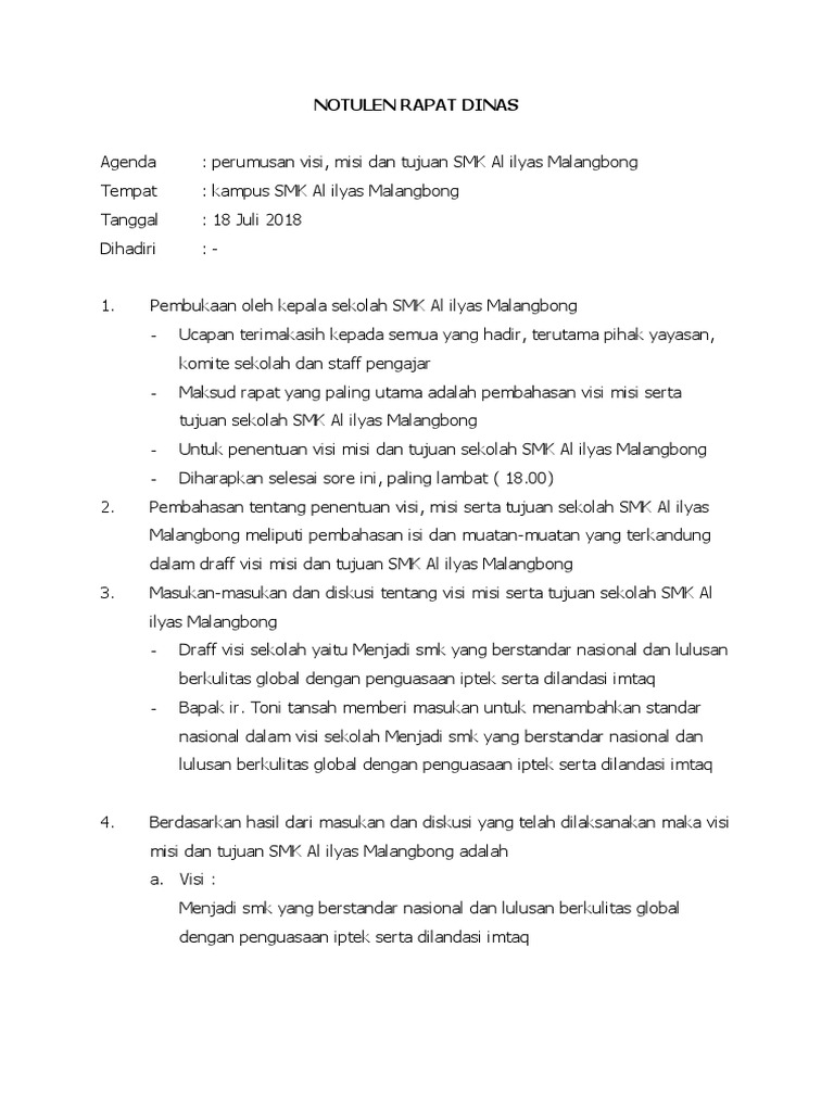 Contoh Notulen Rapat Penyusunan Visi Misi Sekolah Akurat Faktual Elegan Moltoday Com