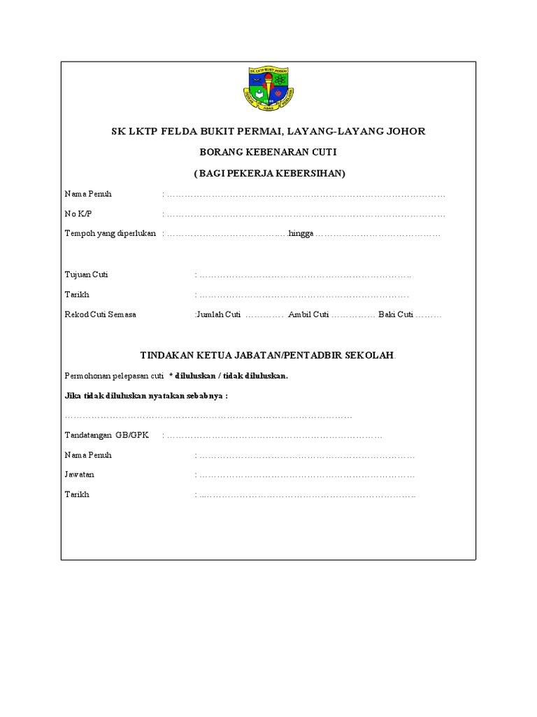 Moshims Borang Permohonan Contoh Borang Cuti Pekerja Swasta Otosection